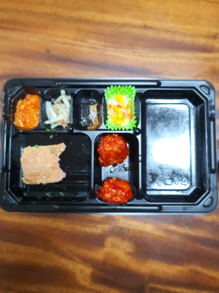 양은 생각보다 괜찮았어요. 스팸의 경우 생각보다 굵기가 얕지 않아 3조각으로도 많다고 생각했고, 닭강정의 경우에도 3개밖에 들어있지 않았지만 좋았어요.